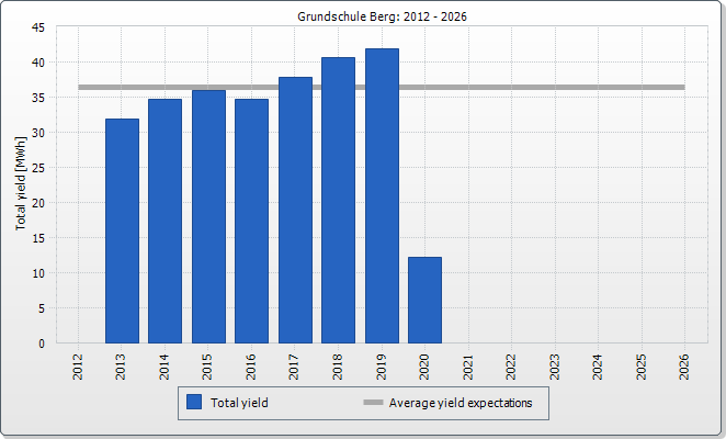 The expected average yield results from a manual specification. Depending on the orientation and the irradiation fluctuations between the individual years, there might be considerably larger deviations in contrast to the expected average yield.