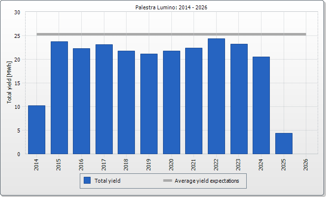 The expected average yield results from a manual specification. Depending on the orientation and the irradiation fluctuations between the individual years, there might be considerably larger deviations in contrast to the expected average yield.