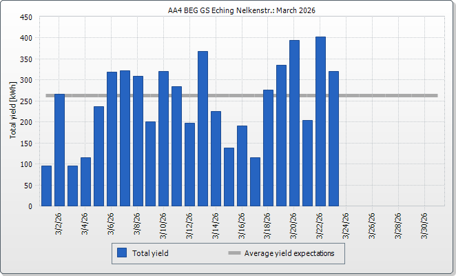 The expected average yield results from a manual specification. Depending on the orientation and the irradiation fluctuations between the individual years, there might be considerably larger deviations in contrast to the expected average yield.
