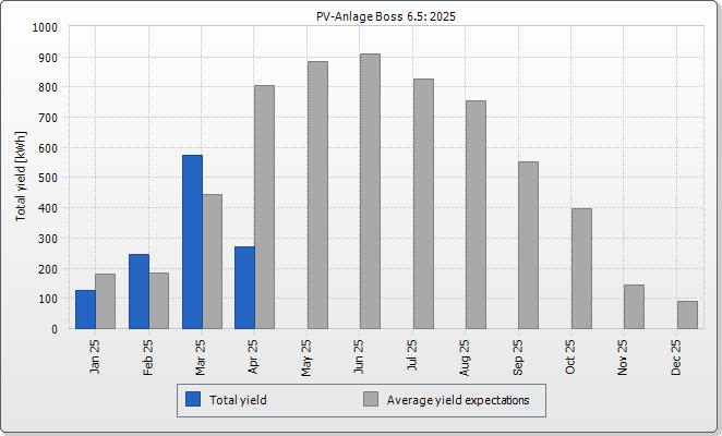 The expected average yield results from a manual specification. Depending on the orientation and the irradiation fluctuations between the individual years, there might be considerably larger deviations in contrast to the expected average yield.