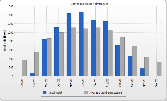 The expected average yield results from a manual specification. Depending on the orientation and the irradiation fluctuations between the individual years, there might be considerably larger deviations in contrast to the expected average yield.