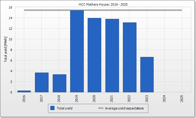 The expected average yield results from a manual specification. Depending on the orientation and the irradiation fluctuations between the individual years, there might be considerably larger deviations in contrast to the expected average yield.