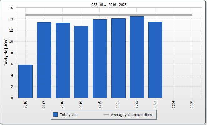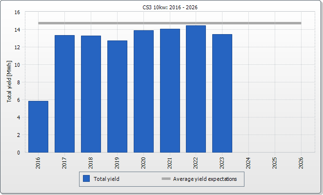 The expected average yield results from a manual specification. Depending on the orientation and the irradiation fluctuations between the individual years, there might be considerably larger deviations in contrast to the expected average yield.