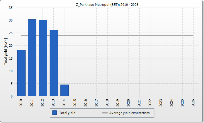 The expected average yield results from a manual specification. Depending on the orientation and the irradiation fluctuations between the individual years, there might be considerably larger deviations in contrast to the expected average yield.