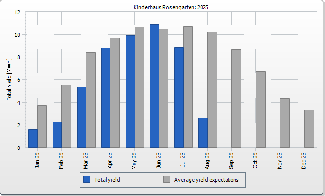 The expected average yield results from a manual specification. Depending on the orientation and the irradiation fluctuations between the individual years, there might be considerably larger deviations in contrast to the expected average yield.