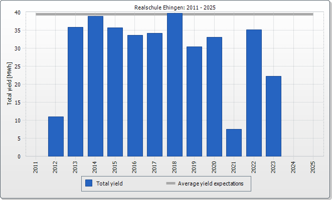 The expected average yield results from a manual specification. Depending on the orientation and the irradiation fluctuations between the individual years, there might be considerably larger deviations in contrast to the expected average yield.