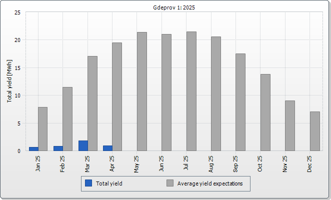 The expected average yield results from a manual specification. Depending on the orientation and the irradiation fluctuations between the individual years, there might be considerably larger deviations in contrast to the expected average yield.