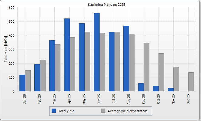 The expected average yield results from a manual specification. Depending on the orientation and the irradiation fluctuations between the individual years, there might be considerably larger deviations in contrast to the expected average yield.