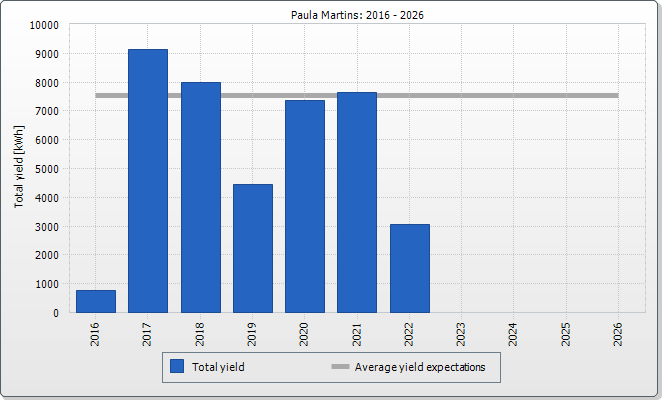 The expected average yield results from a manual specification. Depending on the orientation and the irradiation fluctuations between the individual years, there might be considerably larger deviations in contrast to the expected average yield.