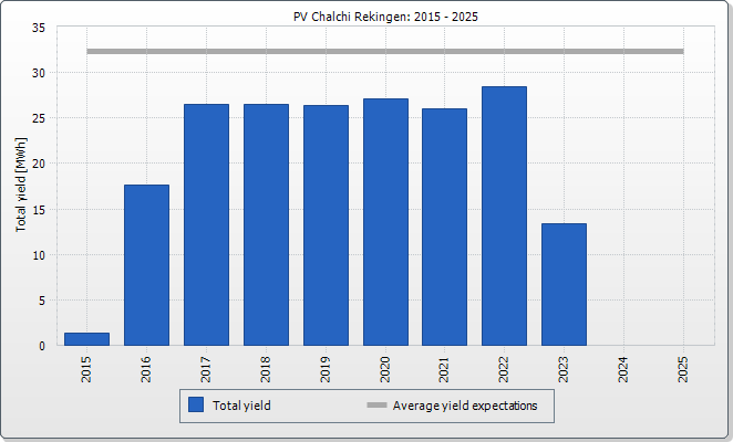 The expected average yield results from a manual specification. Depending on the orientation and the irradiation fluctuations between the individual years, there might be considerably larger deviations in contrast to the expected average yield.