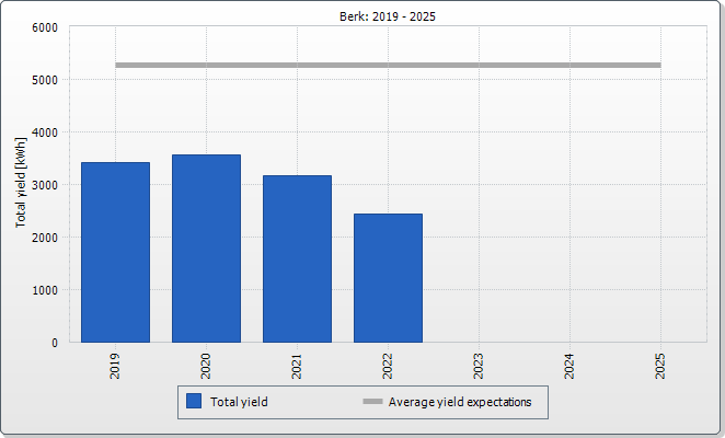 The expected average yield results from a manual specification. Depending on the orientation and the irradiation fluctuations between the individual years, there might be considerably larger deviations in contrast to the expected average yield.