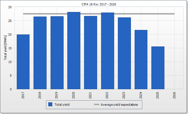 The expected average yield results from a manual specification. Depending on the orientation and the irradiation fluctuations between the individual years, there might be considerably larger deviations in contrast to the expected average yield.
