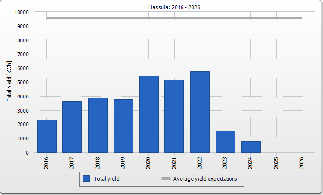 The expected average yield results from a manual specification. Depending on the orientation and the irradiation fluctuations between the individual years, there might be considerably larger deviations in contrast to the expected average yield.