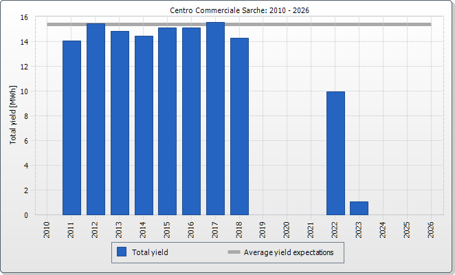 The expected average yield results from a manual specification. Depending on the orientation and the irradiation fluctuations between the individual years, there might be considerably larger deviations in contrast to the expected average yield.