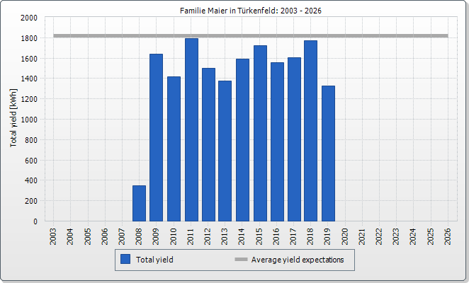 The expected average yield results from a manual specification. Depending on the orientation and the irradiation fluctuations between the individual years, there might be considerably larger deviations in contrast to the expected average yield.