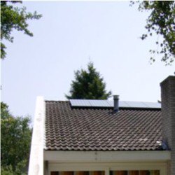 De installatie ligt op een zomerhuisje. De 5 panelen leveren een 20% meer dan het huisje verbruikt per jaar. Meer informatie: www.zomerhuiswestenschouwen.nl
